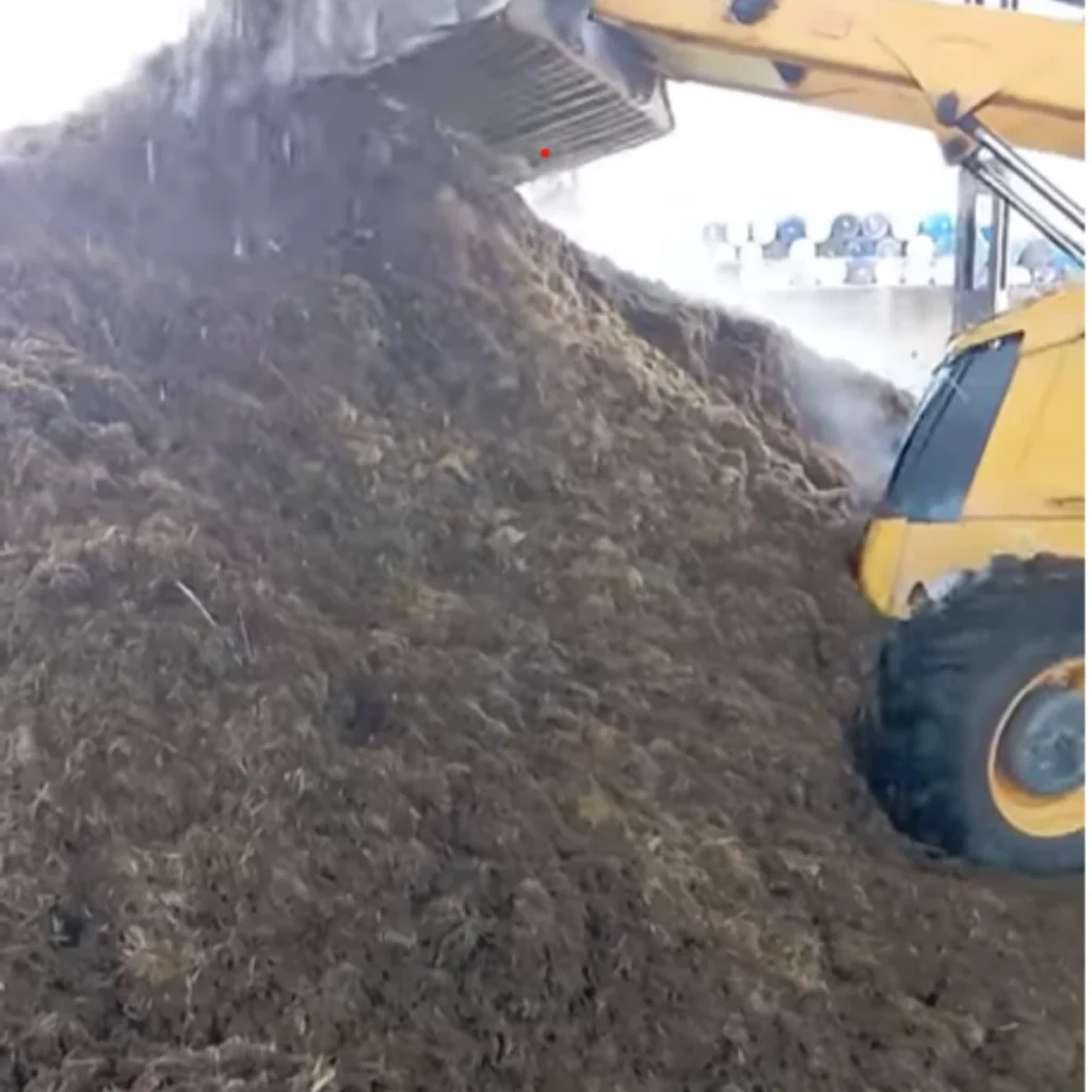 The compost preparation process starts in a mixing yard.