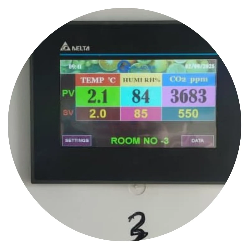 Temperature, humidity, and CO₂ levels are monitored and adjusted
